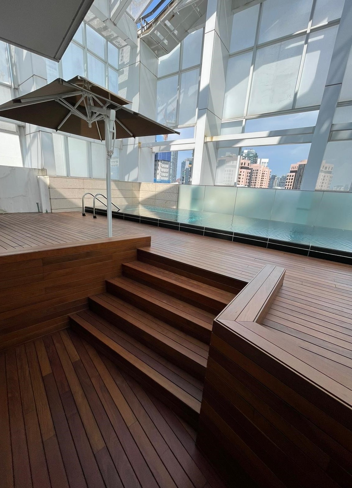 The patented Exterpark decking have been adopted in over 80 countries worldwide, across diverse projects in collaboration with esteemed architecture firms and designers such as Frank Gehry, Jean Nouvelle, Santiago Calatrava, and Norman Foster.